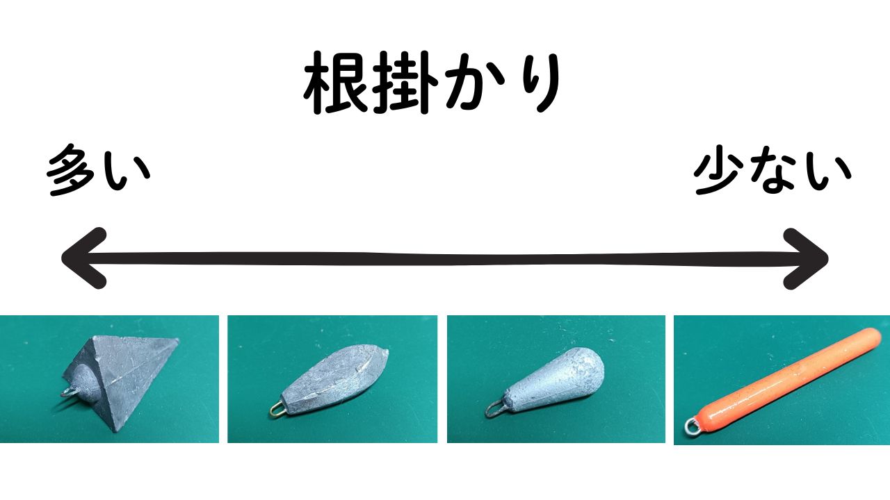 - 根がかりしにくい細長いオモリ(スレンダーシンカー)を使う
