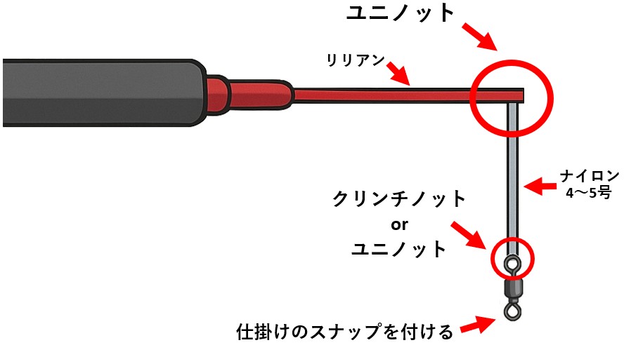 糸は4~5号ぐらいのナイロンラインでOKです。